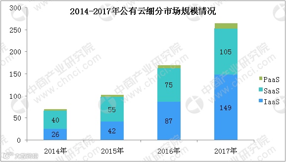 在公有云细分市场中,数据显示,IaaS市场规模为149亿元,SaaS市场规模为105亿元,PaaS市场规模为12亿元,与往年相比,不难发现,IaaS是公有云市场中增速最快的服务类型,伴随着IaaS服务商的大量入场,IaaS市场规模将进一步增长。