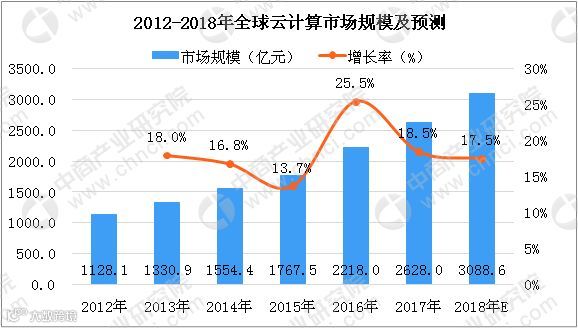 目前,全球云服务正处于高速发展期,数据显示,2017年全球云计算市场规模达到2628.0亿美元,同比增长18.5%,伴随着企业逐渐倾向于追求数字化商业战略,传统IT服务向云端服务转变,全球云计算市场规模将进一步增长,预计2018年全球云计算市场规模将达到3088.6亿美元。