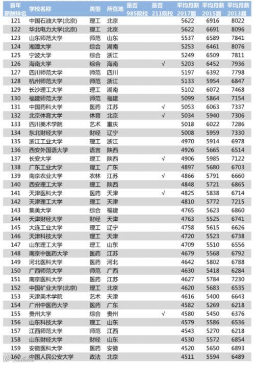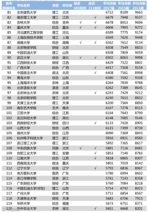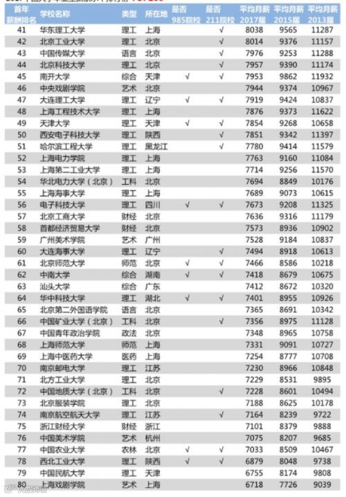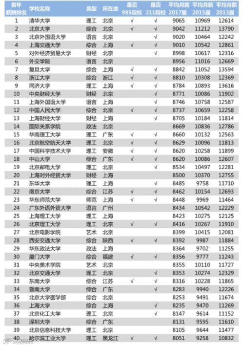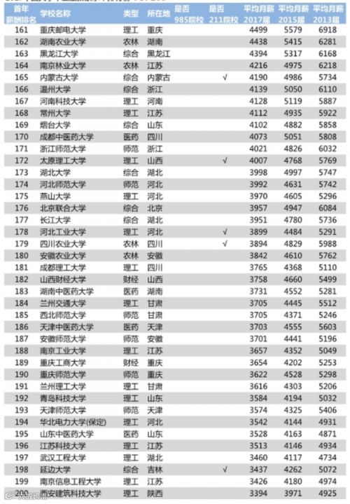 2018年中国大学毕业生薪酬TOP200排名榜