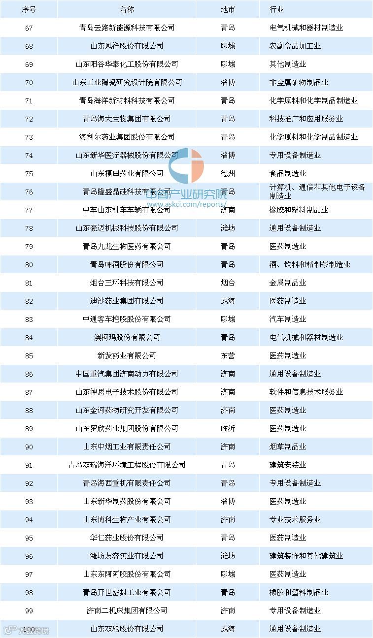 从区域分布来看,百强企业分布在全省14个地市,特别是青岛、济南、烟台三市总计入榜企业达55家,其中青岛入榜24家、济南入榜21家、烟台入榜10家,表明百强企业超五成集中在山东省新旧动能转化三大“核心区”,区域集聚效应明显。