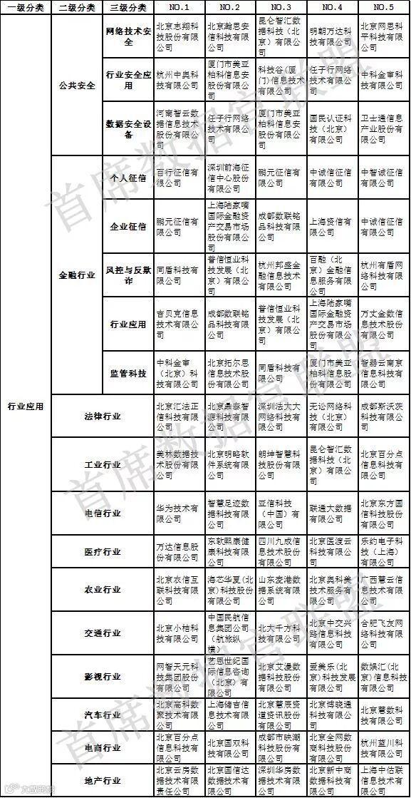 2018年5月26号,《中国大数据企业排行榜》在中国第四届数博会(贵阳)发布。本次新增15个垂直行业和领域,并更新了6个行业和领域分类。上榜企业共358家,其中同时在5个以上细分领域上榜的企业有18家,同时在两个细分领域上榜的企业有42家。其中新上榜大数据企业102家,129家企业连续两次上榜。共有17家企业因并购、股东变化、公司扩张、改制等原因,其公司排名发生了变化。