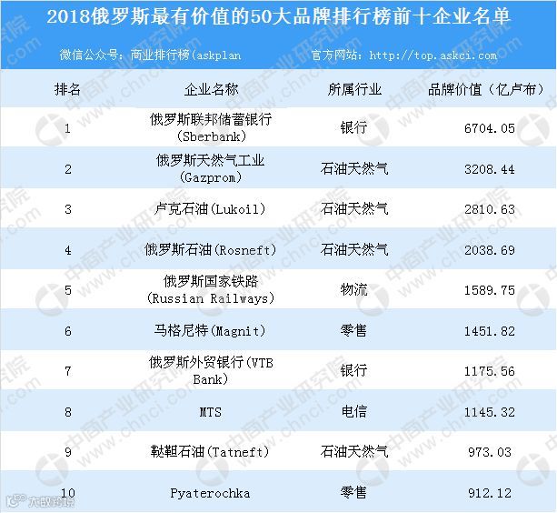 附:2018俄罗斯最有价值的50大品牌排行榜名单