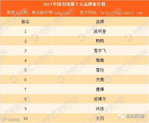 从品牌监测情况来看,中国羽绒服市场集中度较高,波司登、鸭鸭、雪中飞成为最热销的三大品牌。