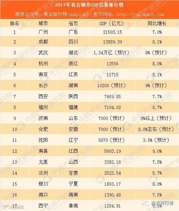 据不完全统计,目前已有17省会发布了2017年经济数据,广州突破2万亿,排名第一。武汉GDP总量1.34万亿,依旧没有超越成都,排名第三。长沙GDP突破万亿,西安、福州、济南、合肥GDP总量携手突破7000亿元。