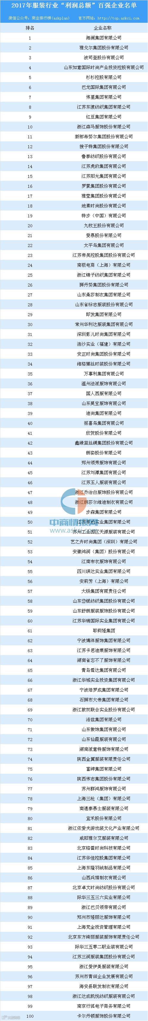 近日,2017年服装行业百强企业名单出炉。在2017年中国服装行业百强企业榜单上,全国共有131家企业榜上有名,其中浙江有30家企业上榜,成为百强企业上榜数排第二的省份,仅次于江苏的35家。
