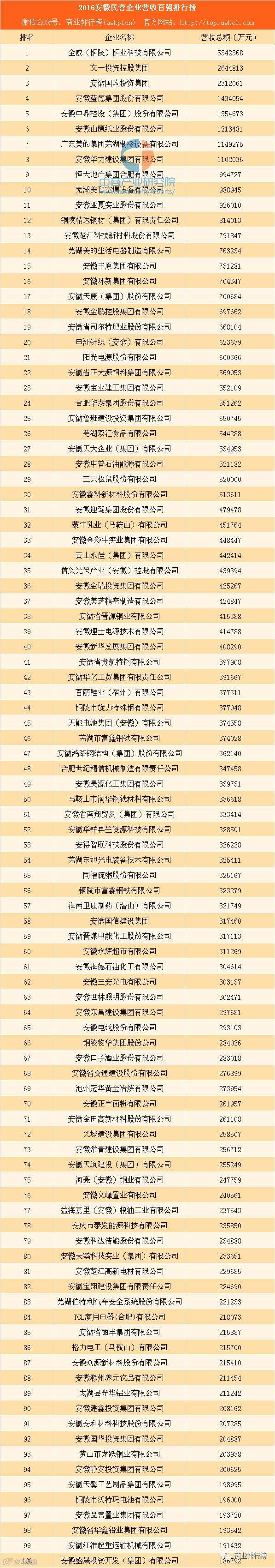2016安徽民营企业营收百强排行榜:全威铜业第一