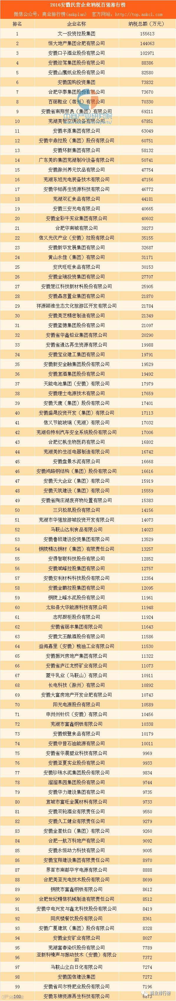 9月28日,“安徽省民营企业百强排序新闻发布会”在滁州举行,安徽省发展民营经济领导小组发布2016安徽省民营企业纳税百强排榜。2016年安徽省民营企业纳税百强上缴税收总额为257.44亿元,增长28.21%。