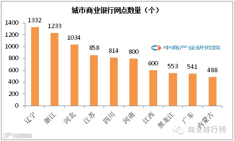2015年中国城市商业银行营业网点区域排名榜