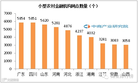 2015年中国小型农村金融机构营业网点区域排名榜