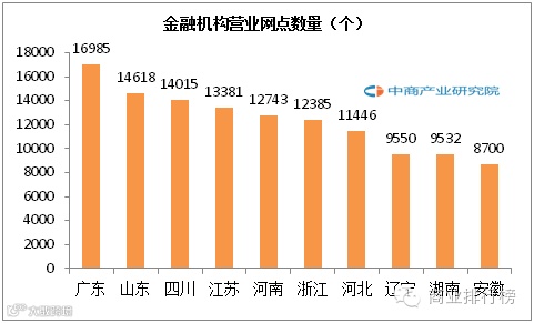 2015年中国金融机构营业网点区域排名榜