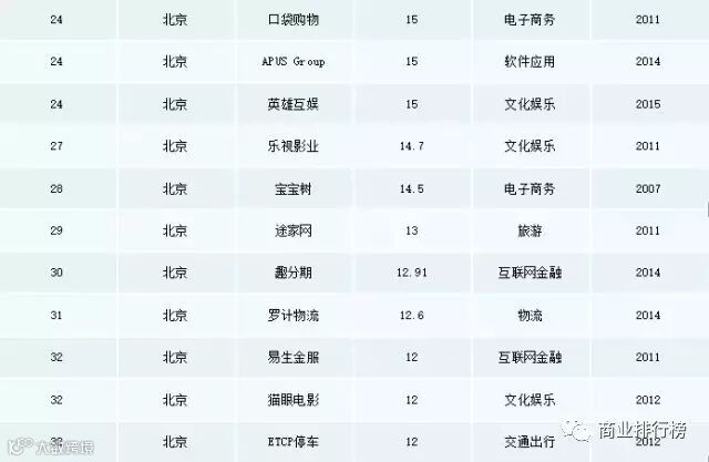 《报告》显示,中国独角兽企业共分布于18个领域,其中电子商务、互联网金融、智能硬件、交通出行成为独角兽集中爆发领域,数量占比56%。其中,电子商务以31家企业位居第一。互联网金融企业有17家。