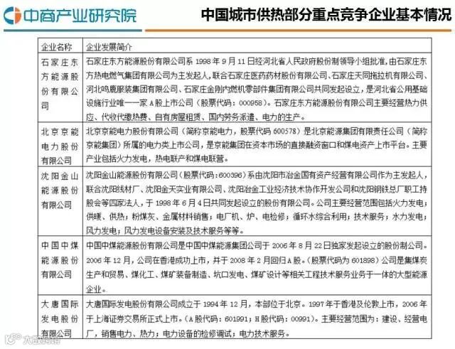 四、中国城市供热竞争企业分析
