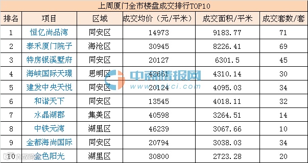恒亿尚品湾项目荣获全市成交排行榜冠军,成交榜前十项目中,同安区占据了半壁江山,仅翔安区无项目上榜。