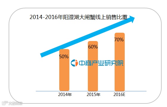 2012-2016年阳澄湖大闸蟹线上销售比重