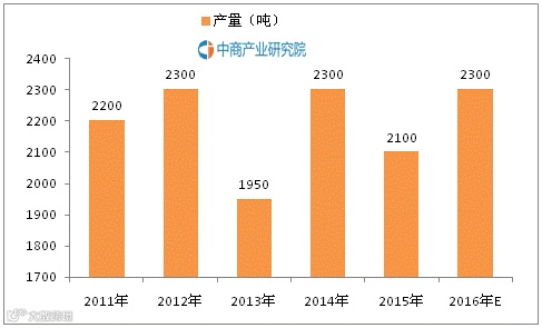 2011-2016年阳澄湖大闸蟹产量