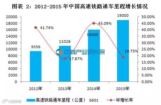 我国高速铁路网始建于2004年,第一条高铁线路京津城际铁路于2008年8月通车,从此成为铁路投资重中之重,2015年以高速铁路为主骨架的快速铁路网将基本建成,总规模达4万公里以上,其中高速铁路通车里程达到1.9万公里,较2012年翻了一番,与其他铁路共同构成的快速客运网可基本覆盖50万以上人口城市。