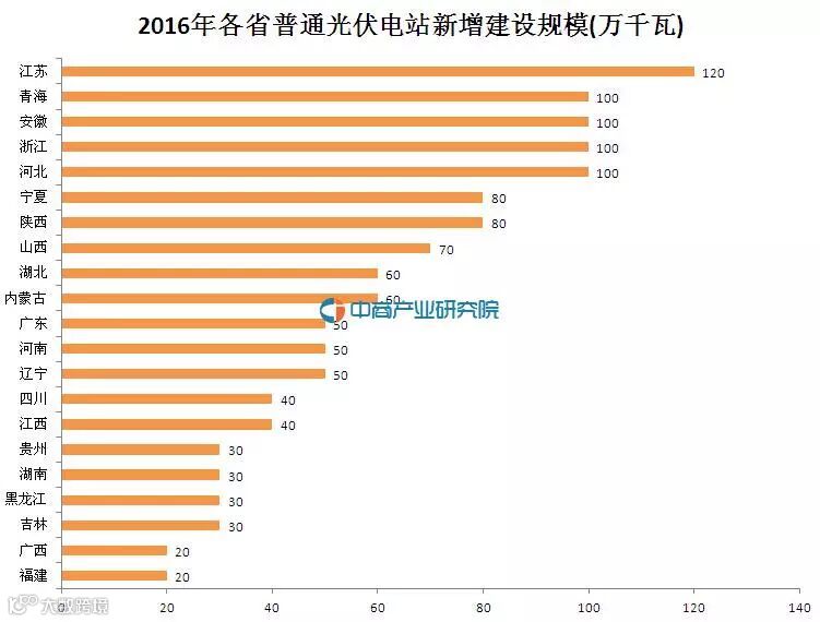 2016年各省普通光伏电站新增建设规模