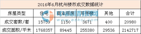 中商情报网讯:2016年6月杭州新建商品房成交数据统计,杭州全市商品房成交20980套,成交面积2142717平方米;其中商品住宅成交15759套,成交面积1768357平米。