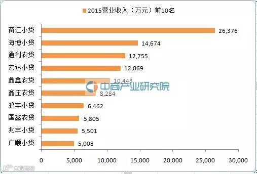 中商情报网讯:据中商产业研究院大数据库数据显示,2015年42家新三板挂牌的小贷公司共计实现销售收入19亿元,其中15家公司收入同比下降,营业收入过亿元的共5家,其中商汇小贷以2.6亿的营收排各公司首位。