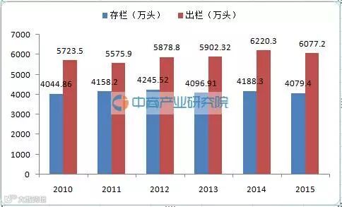 图:2010-2015年湖南省生猪存出栏数据趋势图