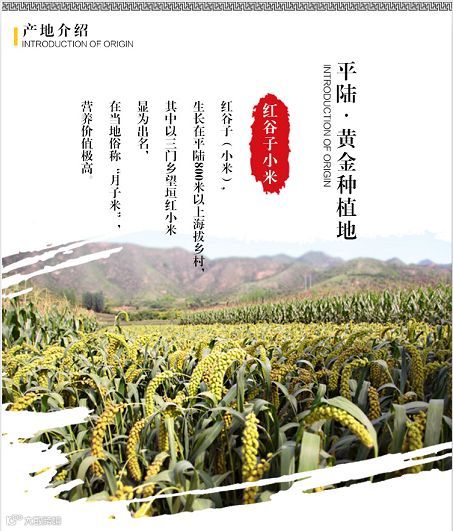 这个地方海拔高,昼夜温差大,全年充足的阳光,优质的空气、土壤,自然雨水浇灌,农家肥水滋养,全程不追化肥,不用打药,人工间苗,人工除草,人工驱鸟,因为鸟儿很喜欢吃红谷子小米,当地农民为了不伤害鸟类,在谷子成熟期,会用木竿制成衣服架子,穿上废弃的旧衣,仿佛一个农人在谷地里赶鸟,得天独厚的自然条件、传统古老的耕作方法、和谐的生态环境造就了望垣小米优质的口感。