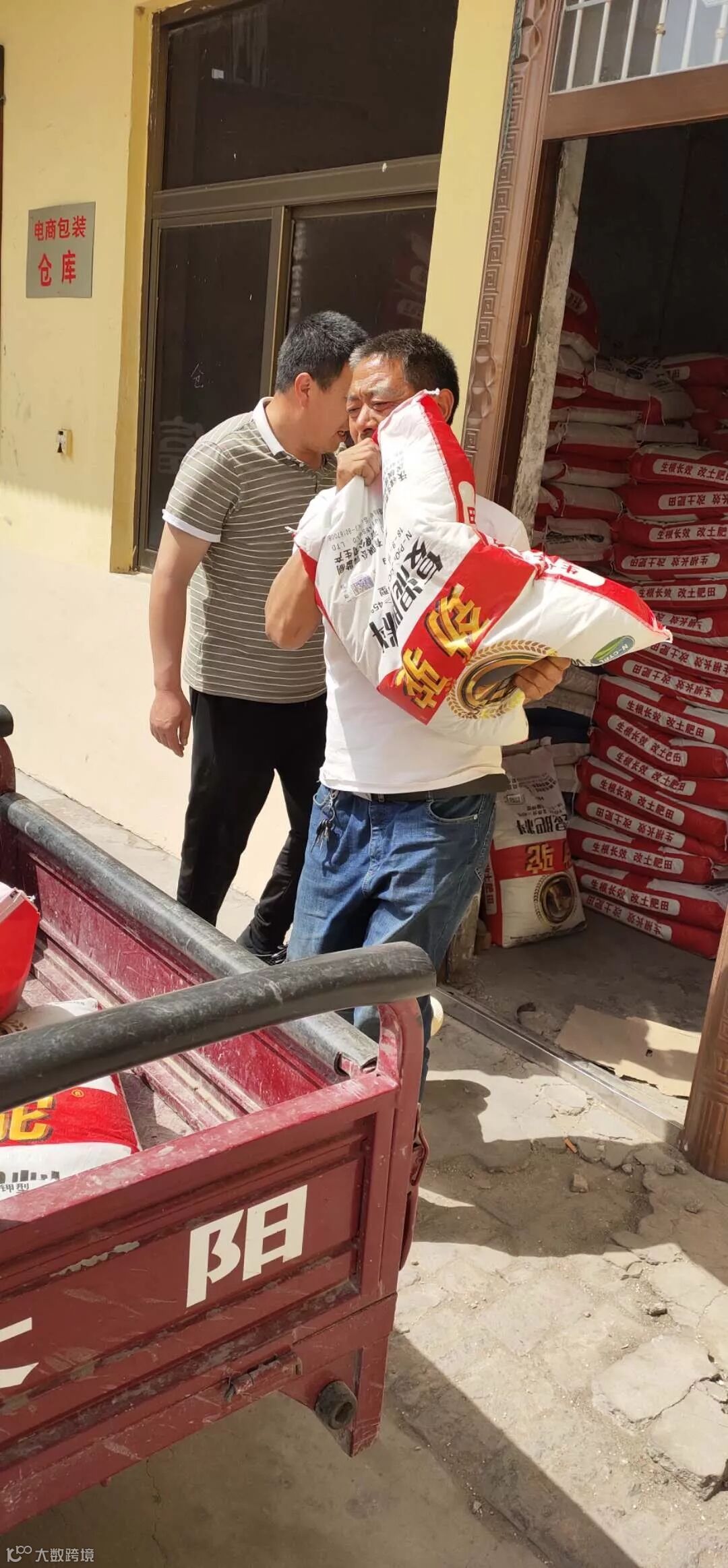 “叔,您要的30袋劲驼给你送来了,你看放哪?”