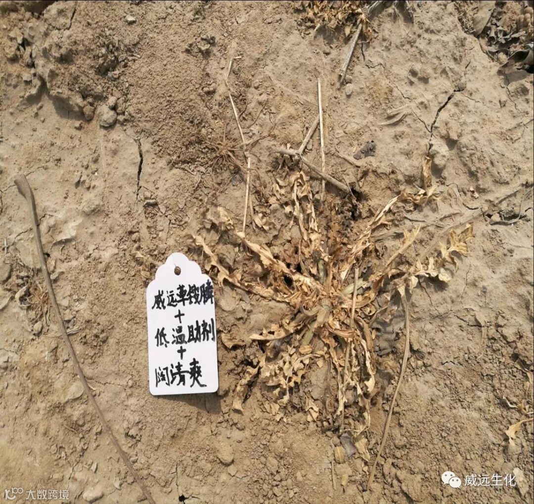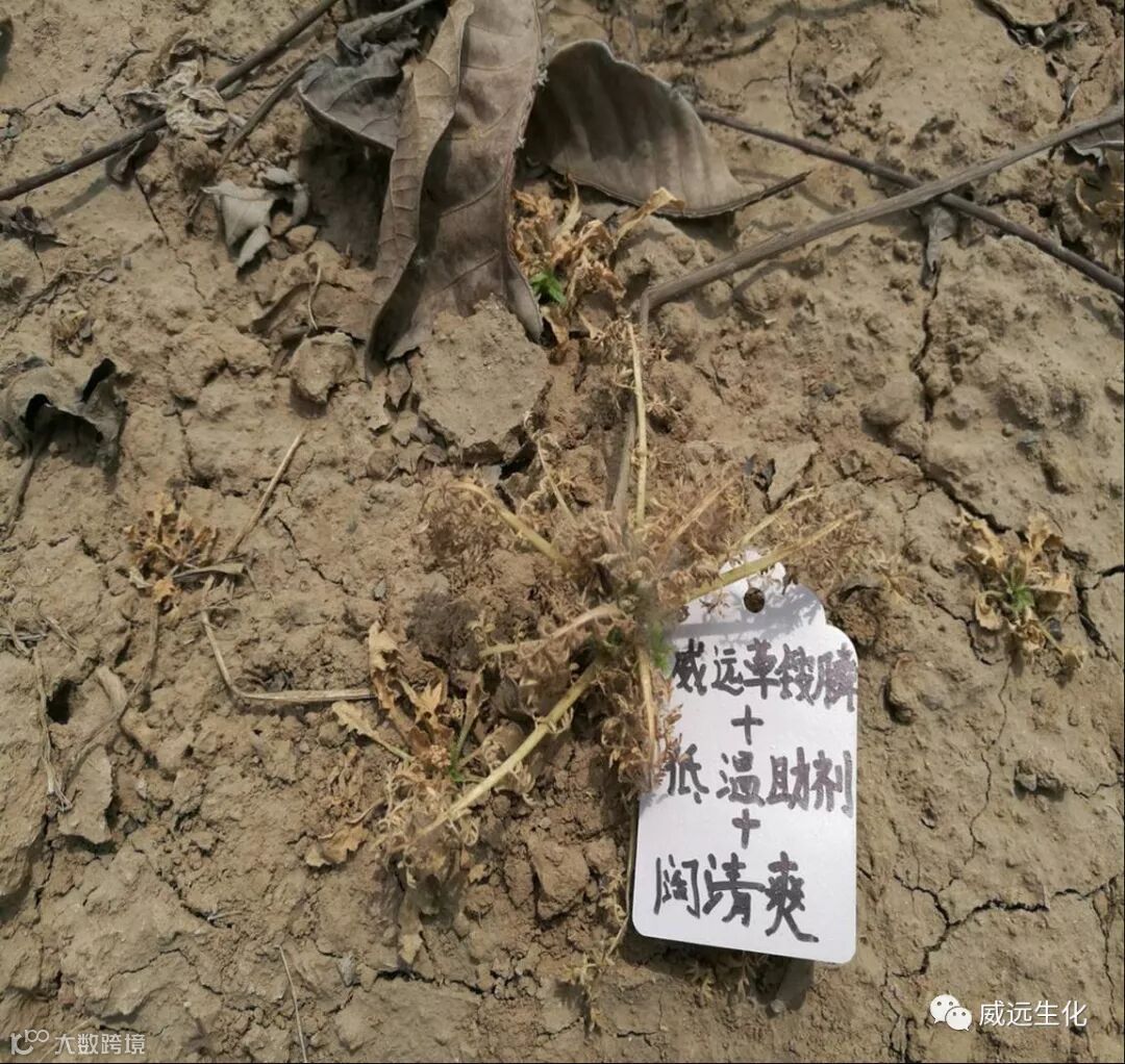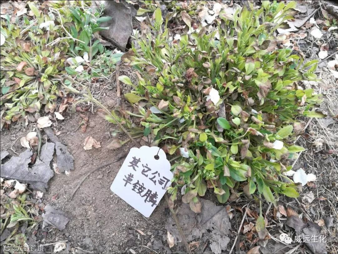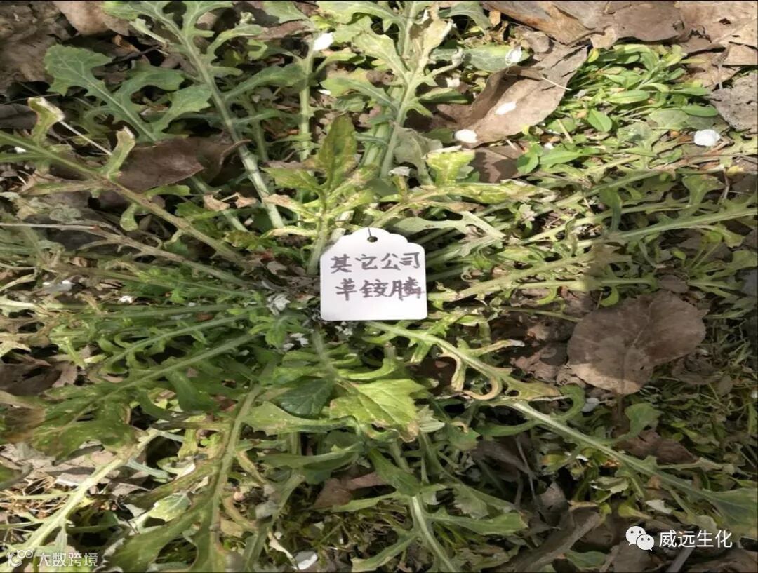 2.阔清爽为威远生化搭配草铵膦使用的产品,主要对阔叶杂草藜,小飞蓬,马齿苋等效果优异,具有见效快,对作物安全的特点,也是草铵膦复配的完美产品。