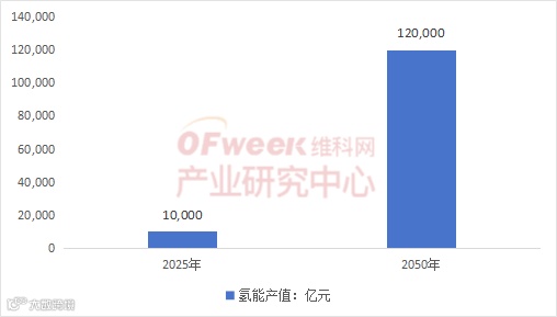 根据中国氢能联盟预计,到2025年,我国氢能产业产值将达到1万亿元;到2050年,氢气需求量将接近6000万吨,实现CO2减排约7亿吨,产业链年产值达12万亿元。
