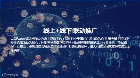 本次大会由OFweek维科网主办,以数智融合 创新未来为主题,汇聚全球数字经济产业的智慧与力量,搭建集先进技术交流、产品展示、成果交易、高端论坛、招商引资、评选颁奖于一体的国际化、专业化服务平台。为进一步高效对接展商及观众服务,助力行业上下游深度交流,OFweek维科网将同全球数字经济产业优秀企业共同打造数字经济产业生态圈,引领全球数字经济产业向前发展。