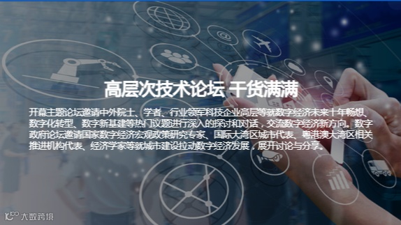 大会期间将举办近二十场数字经济不同应用领域行业论坛及峰会、评选颁奖、项目对接与路演、发布会等,举办100余场专题演讲,邀请100位各领域知名专家学者、院士及企业家代表出席演讲,有效整合数字经济产业上下游资源,促进数字经济前沿技术及应用发展。