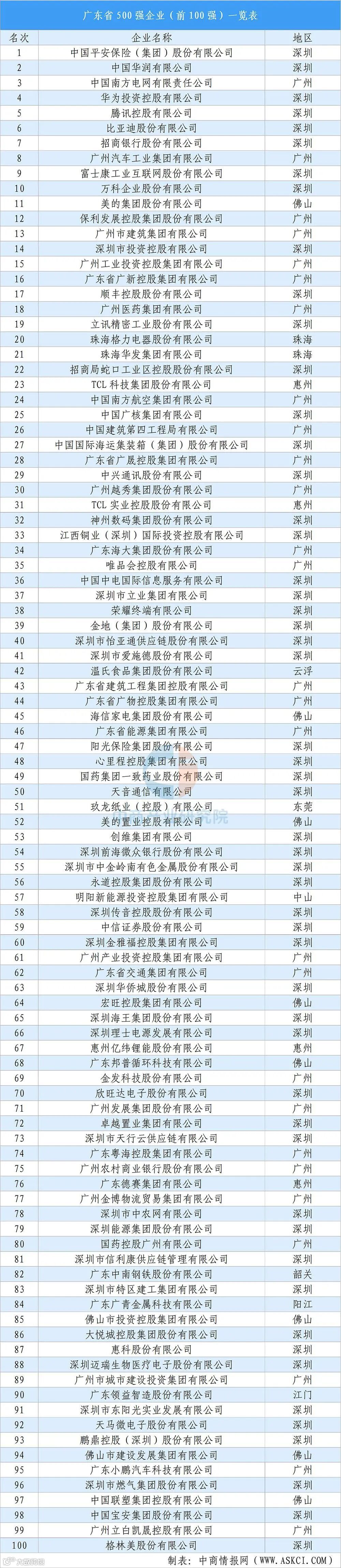 广东省企业家协会发布的2024广东500强企业榜单及发展报告显示,2024年广东500强企业制造业企业数量为267家,较去年增加8家,占比达53.40%;中国平安、华润、南方电网、华为、腾讯、比亚迪、招商银行、广汽、富士康、万科进入前10。500强企业营业收入达18.73万亿元,较去年增加了0.37%;从前100强企业来看,平均营收额为1510.5亿,同比增长1.08%,营业收入增长趋势明显;500强企业净利润达11734.89亿元,较去年增加了6.84%。