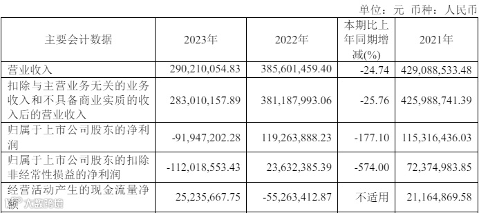 4月26日,长光华芯披露2023年年度报告。报告显示,长光华芯2023年度实现营收2.9亿元,同比下降24.74%;归母净利润亏损9195万元,同比由盈转亏;扣非净利润亏损1.12亿元,同比由盈转亏。