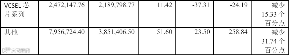 对于多个系列产品营收同比下降的情况,长光华芯对此表示:高功率单管系列主要受芯片价格下调,及受市场激烈竞争的影响,其他产品系列如单管模块等价格随着市场整体行情亦有所下调,导致收入及毛利率均为下降趋势,高功率巴条系列价格亦有所下降,相应影响毛利水平;VCSEL 芯片系列由于产品处于小批量导入阶段,毛利受相应的 产品结构构成影响,不具备代表性。