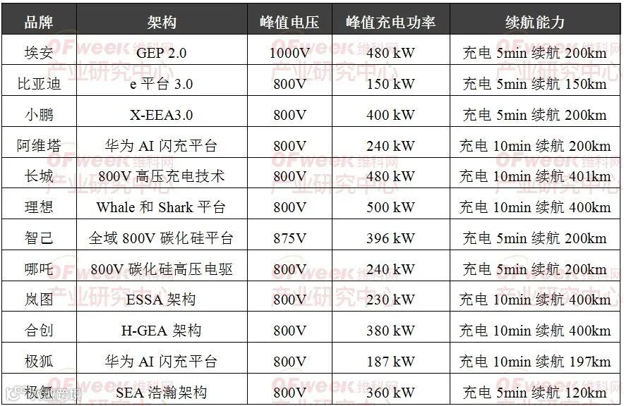 目前,多家厂商持续投入,超充布局加速。包括保时捷、特斯拉、小鹏、理想、埃安、极氪等多家厂商发布超充解决方案,各车企正在努力抢占大功率快充高地。