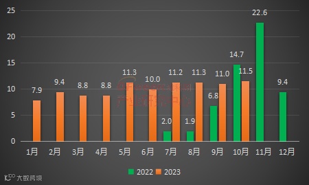 此外,随着产能过剩与需求增长双重困境,厂商抢占市场份额异常激烈,动力电池价格接近历史最低水平,截止11月17日,方形磷酸铁锂(动力型)含税价格已跌破0.5元/Wh,已击穿部分企业成本线,前三季度行业毛利水平同比下滑。2023年,很明显的是,中国的动力电池企业正在经历深度的行业调整,电池企业市场份额的“争夺战”愈演愈烈,同时暂缓产能继续扩张甚至停滞。