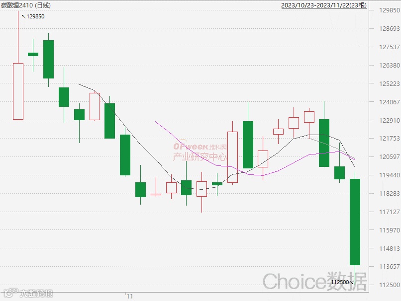 此外,期货价格作为现货价格的锚定点,远期期货价格持续走低,加剧市场补库周期,现货价格博弈加剧,截止11月22日,碳酸锂2410跌至11万附近,收盘报11.25万元/吨。