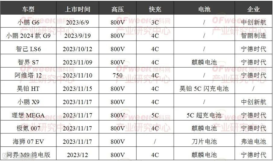 从近半年新上市的车型中也可以看出,800V高压和4C快充基本都配备。