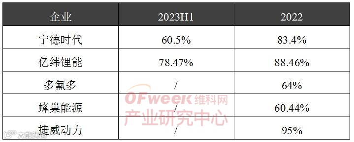 部分企业电池产能利用率