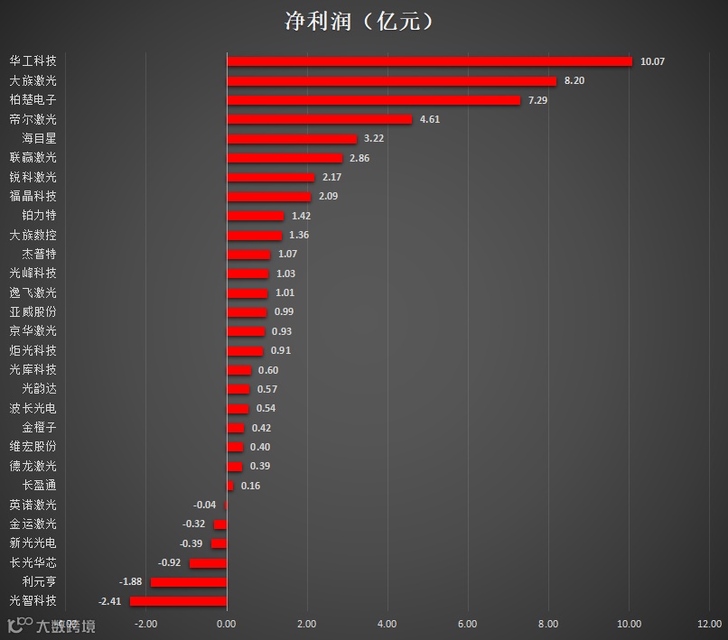 华工位列榜首,大族紧随其后 6家企业现亏损