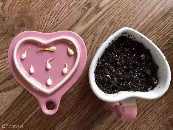 3、找个自己喜欢的器皿或杯子装上湿润的泥土,把种子全部摆好,小头朝上。