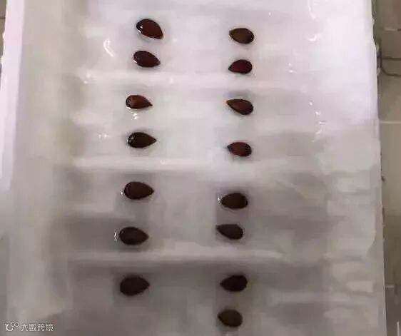 3、找个塑料盒,底部铺上卫生纸,用喷壶把纸喷湿。将苹果籽粒整齐地摆上,然后上面再放一层纸巾,也喷湿,这样种子更容易发芽。
