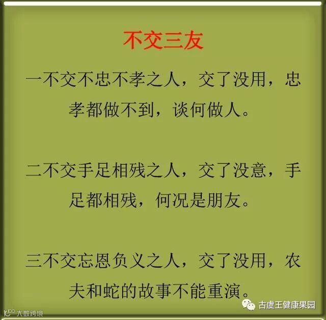 导读:不交不忠不孝之人,交了没用,忠孝都做不到,谈何做人。不帮隔着人的忙,有话你就直说。狂妄自大,口出狂言,让自己