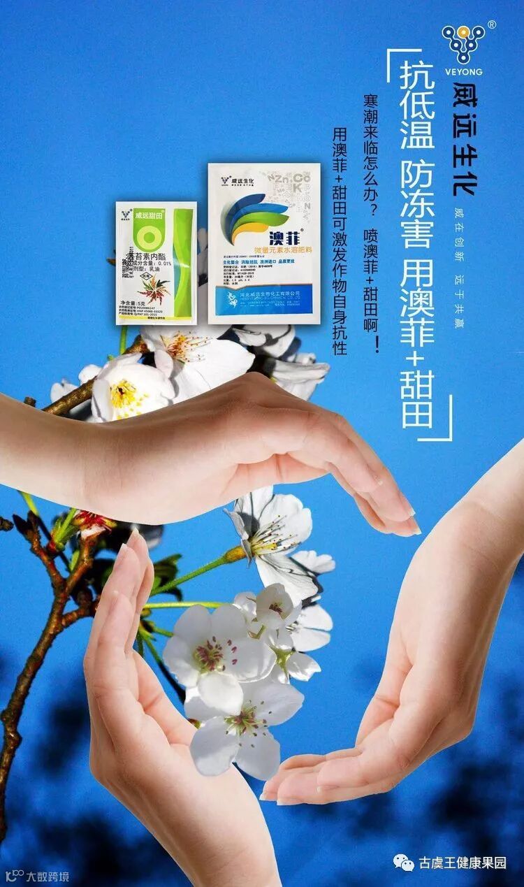 5.喷施高磷高钾水溶肥(澳菲、澳菲磷钾)1500倍+威远甜田(芸苔素内酯)3000-5000倍;澳菲1500倍+人用葡萄糖400倍喷施,来激发作物潜能,提高防冻抗冻能力。