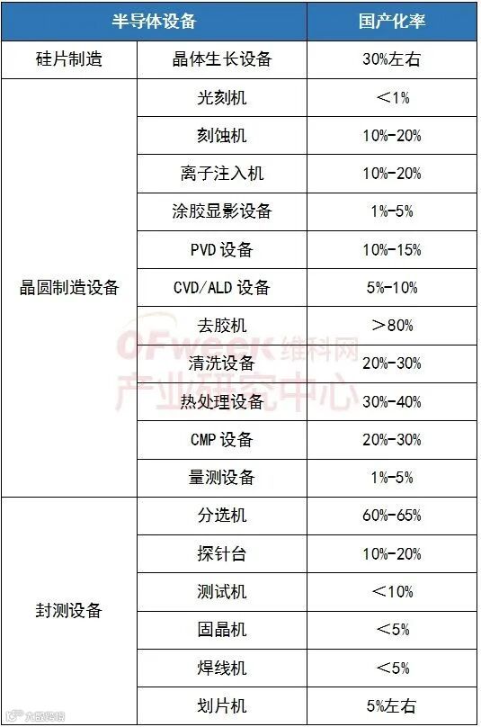半导体设备国产化率情况