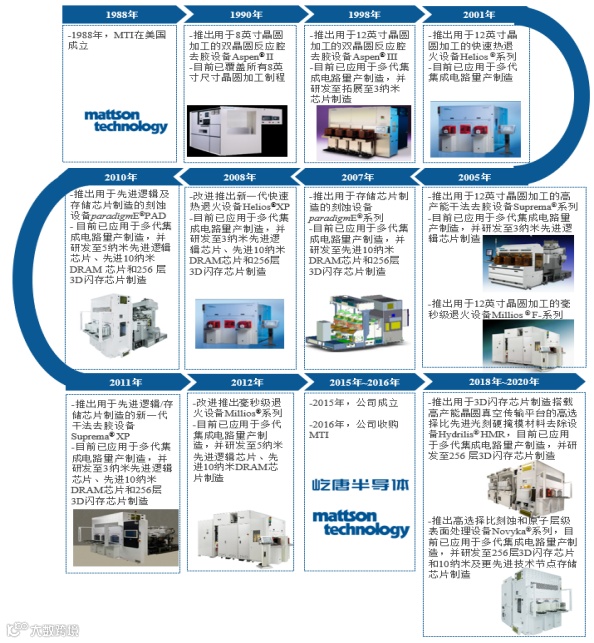 屹唐半导体推出的干法去胶设备包括Aspen®II、Aspen®III、Suprema®系列、Suprema®XP、 Hydrilis®HMR等,快速热退火设备包括Helios®系列、Millions®F-系列、Helios®XP,刻蚀设备包括paradigmE®系列、paradigmE®PAD等。