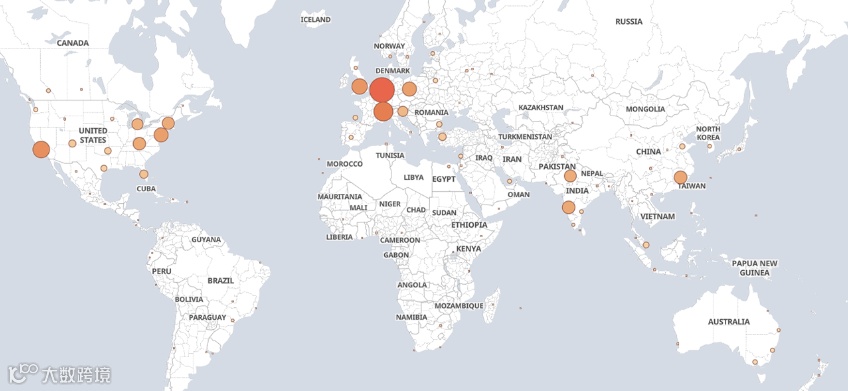 下面的全球初创公司热点图突出了StartUs为这项研究分析的1570家典型激光初创公司和规模扩大公司的全球分布。StartUs创建的热图显示,西欧的初创企业活跃度较高,其次是印度、中国和美国: