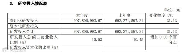 中控技术在创新的道路上未曾停歇,持续加大研发投入的力度。2023年其研发费用90780.70万元,同比增长31.13%,占营业收入的比例为10.53%。