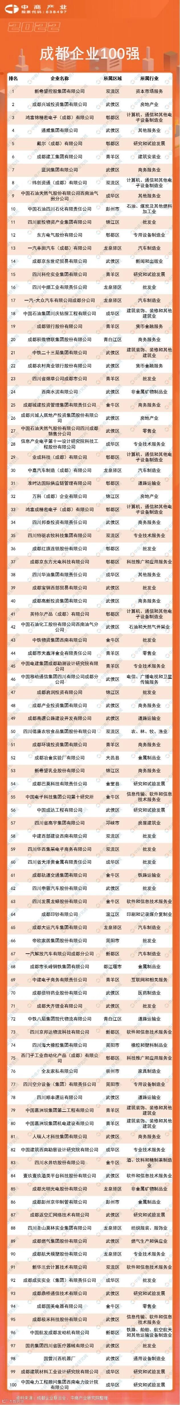 新希望控股集团有限公司、成都兴城投资集团有限公司、鸿富锦精密电子(成都)有限公司、通威集团有限公司、戴尔(成都)有限公司、成都建工集团有限公司、蓝润集团有限公司、纬创资通(成都)有限公司、中国石油天然气股份有限公司、西南油气田分公司、中国石油四川石化有限责任公司进入榜单前十。