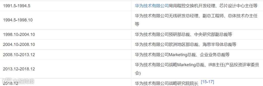 1995 年华为中研部成立(后升级为“基础研究部”),负责华为芯片设计。徐文伟先后担任过基础业务部的总经理、无线业务部总经理,预研部总裁。
