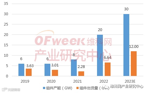 图12 2019-2023年正泰新能组件产能及出货情况